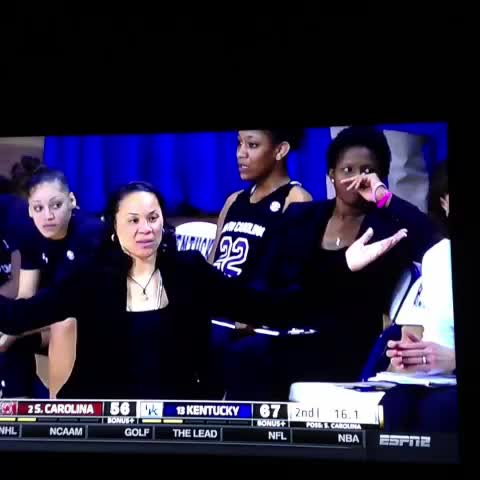 Dawn Staley doesn't appear to be thrilled with Kentucky's timeout to celebrate.